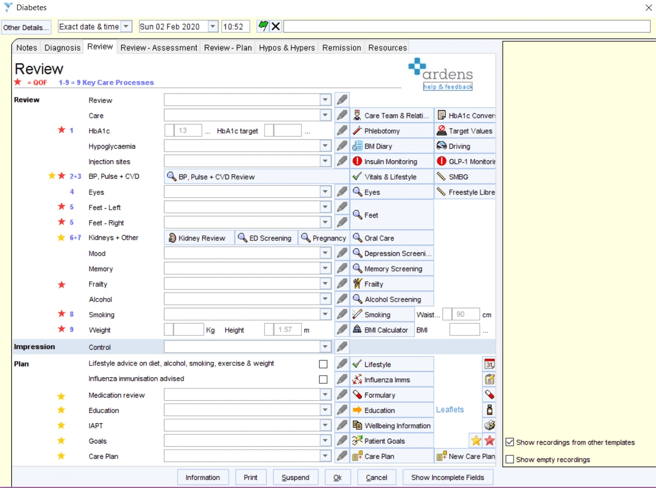 Ardens Clinical includes standardised clinical templates that incorporate national and local guidance. These templates cover various health conditions, as well as multi-morbidities, to ensure consistency in care is delivered to patients across GP practices. The templates also ensure all relevant clinical information is coded accurately into the patient's record.